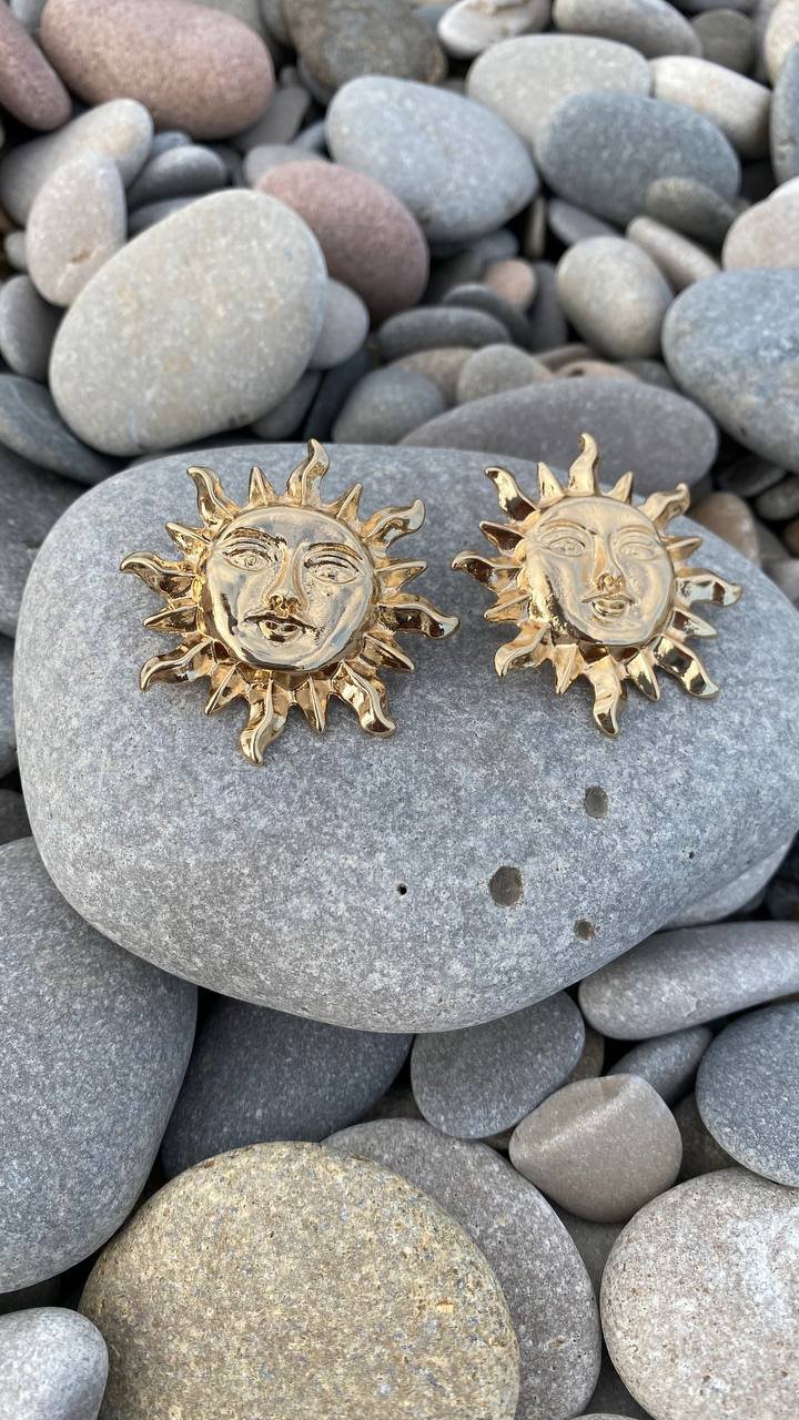 These earrings are like a burst of sunlight, scorching with their radiant rays. Every detail is crafted with the utmost finesse: the smiling face of the Sun and majestic rays symbolizing warmth and power. Perfect for girls whose style is full of energy, shine, and passion. Bold, bright, and uncompromising.