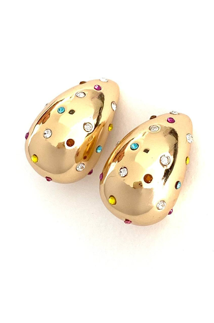 These luxurious teardrop-shaped earrings are adorned with sparkling multicolored crystals, giving them a magical charm. The gold-plated finish adds shine and elegance, making the earrings a perfect accent for any outfit. The "Magic Drops" earrings are not just jewelry but a true masterpiece that will highlight your sophistication and style.