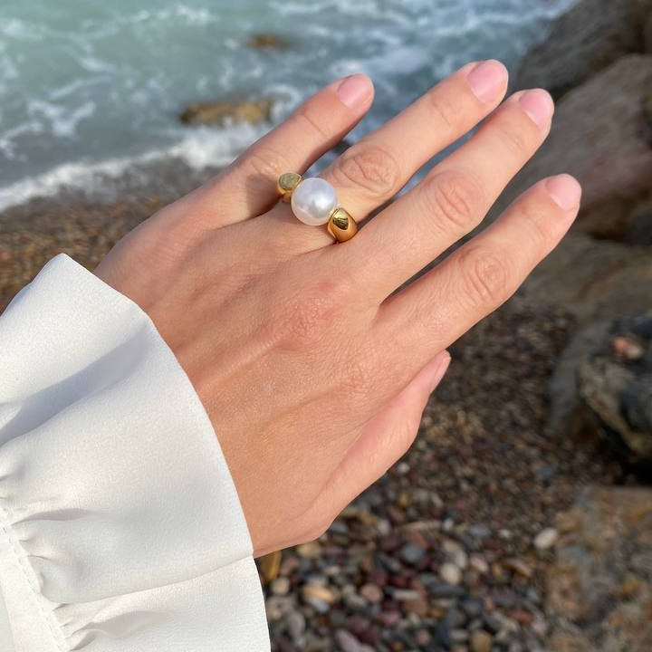 The "Pearl of the Ocean" ring captures the endless motion of the waves, the mystery of the deep, and the magic of dawn over boundless waters. A luminous pearl, like a drop of sea foam, is embraced by a gleaming gold-toned setting that echoes the curves of ocean currents. It evokes the freshness of the sea breeze and the sunlight shimmering on the horizon. Elegant yet bold, this piece is made for girls who carry the spirit of the ocean in their hearts.