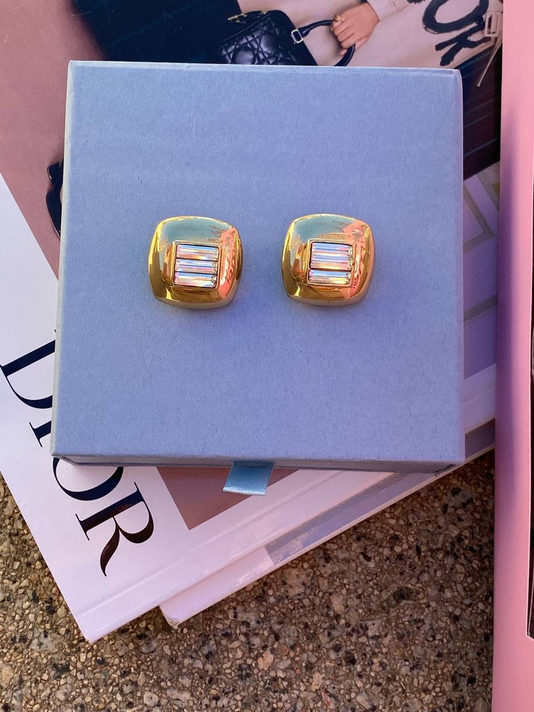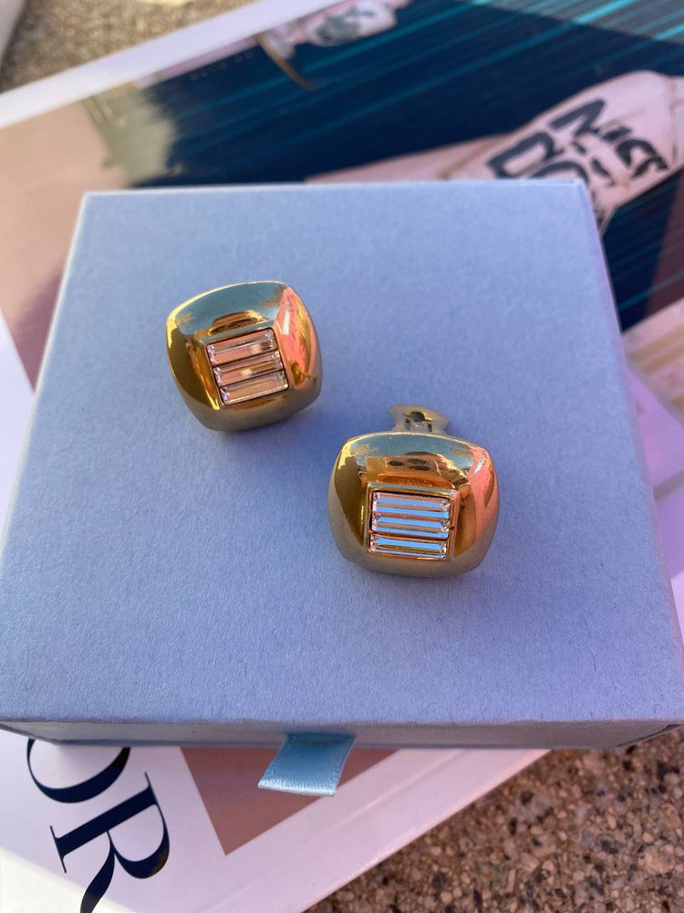 These vintage earrings bring luxury and elegance to any look. Made from high-quality metal with a golden finish, they are adorned with three exquisite crystals that add a refined sparkle. Their classic design makes them perfect for both evening outings and everyday wear. Feel special with the "Golden Gleams".