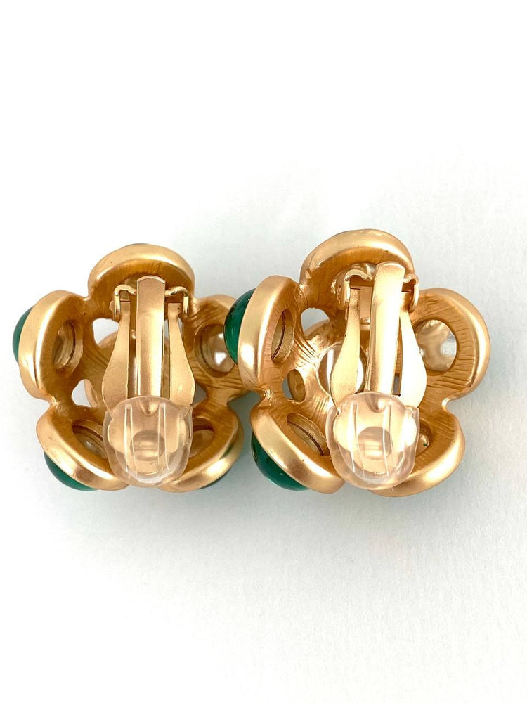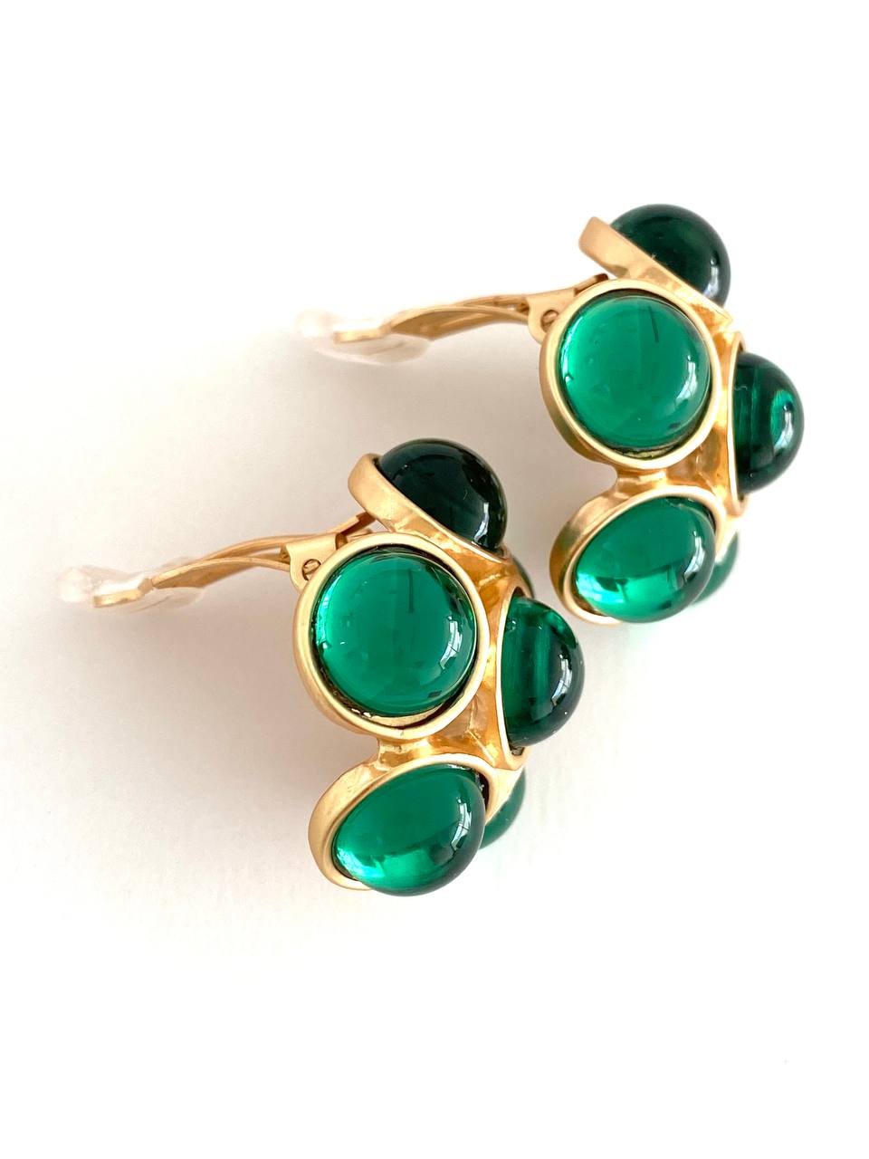 The 'galaxy' clips exude sophistication and originality. The golden setting inlaid with green stones creates a cosmic glow effect. Ideal for those who appreciate unique design and elegance. Perfect for both everyday looks and special events