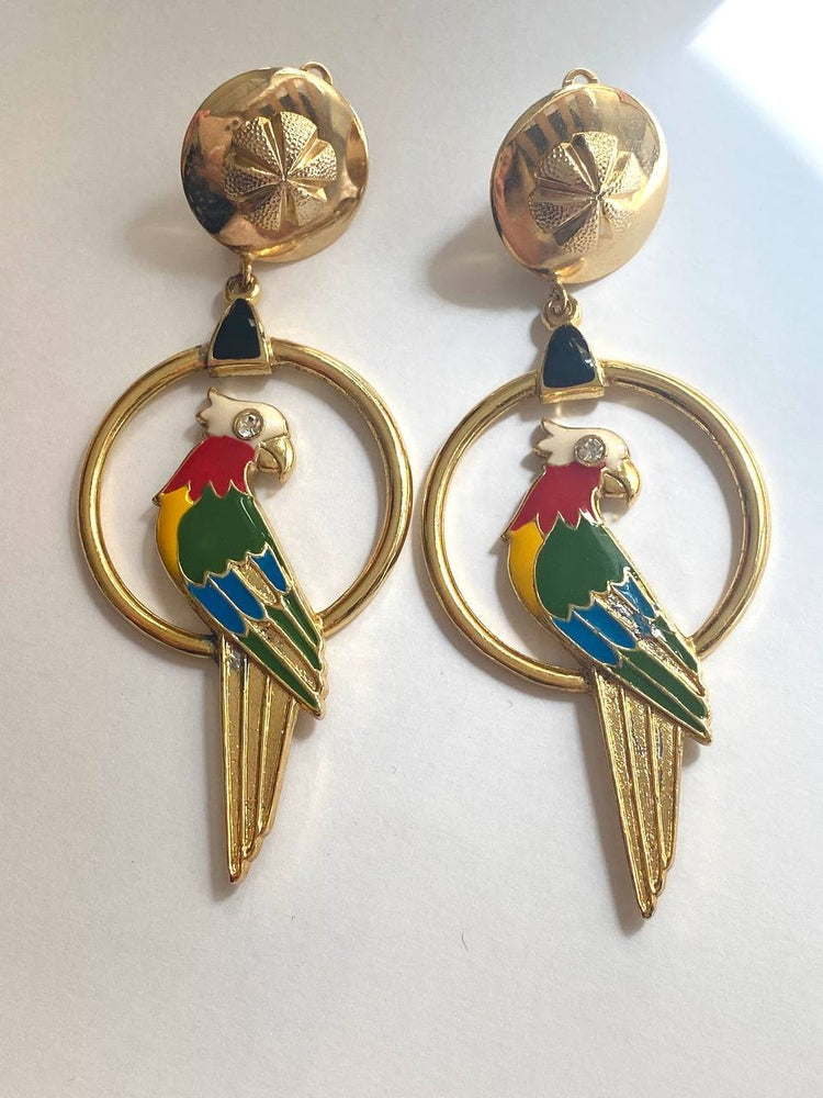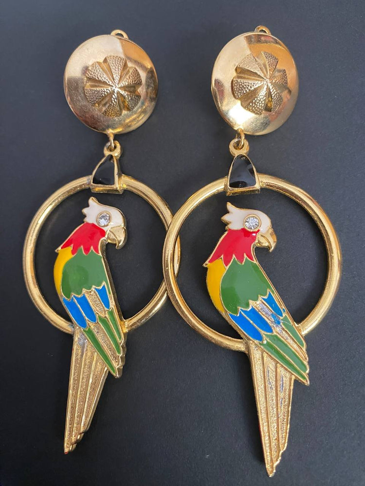 Vibrant and exotic, these “Tropical Parrot Elegance” earrings blend classic gold with bold tropical colors. Perfect for adding a touch of summer to any outfit, they feature intricate parrot designs with crystal details, making you stand out effortlessly.