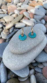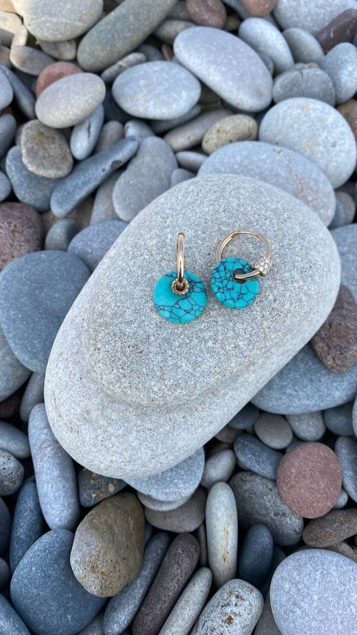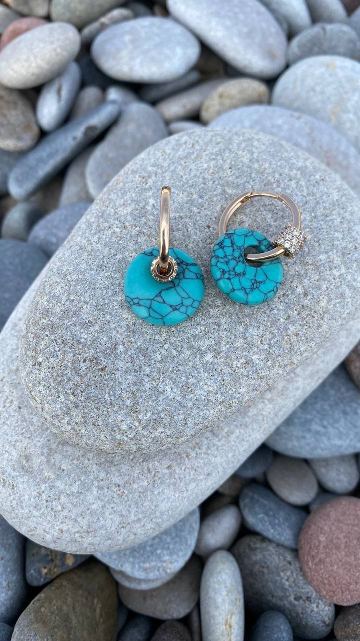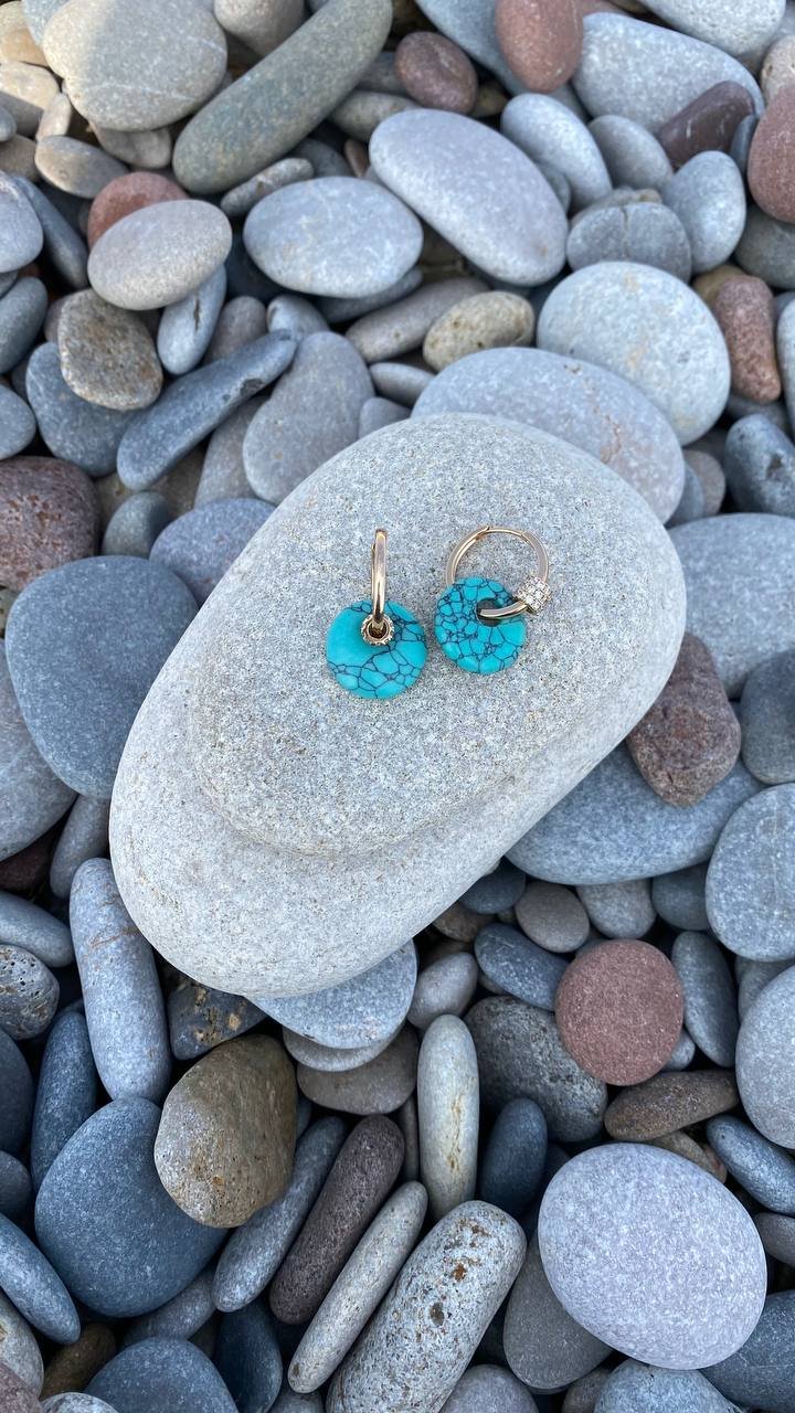 Minimalist yet striking earrings featuring natural turquoise, embodying the harmony of nature and refined luxury. Their unique feature is a versatile, transformable design! The removable charms allow you to wear them in different ways: with turquoise pendants for a bold look or as sleek, classic hoops. Customize your style to match your mood and outfit.