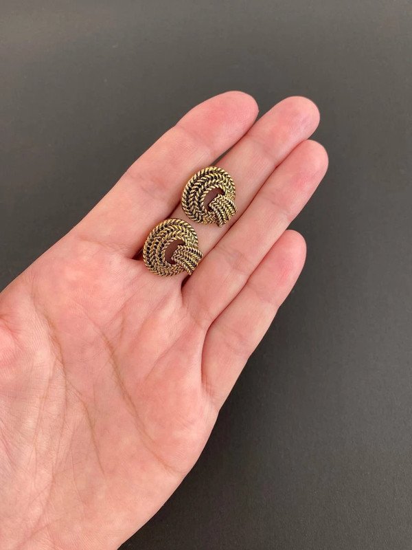 Elegant vintage earrings featuring a textured woven-knot design. A timeless piece that adds sophistication and style. Perfect for those who appreciate retro aesthetics.
