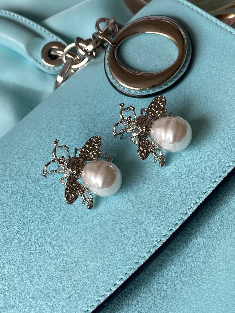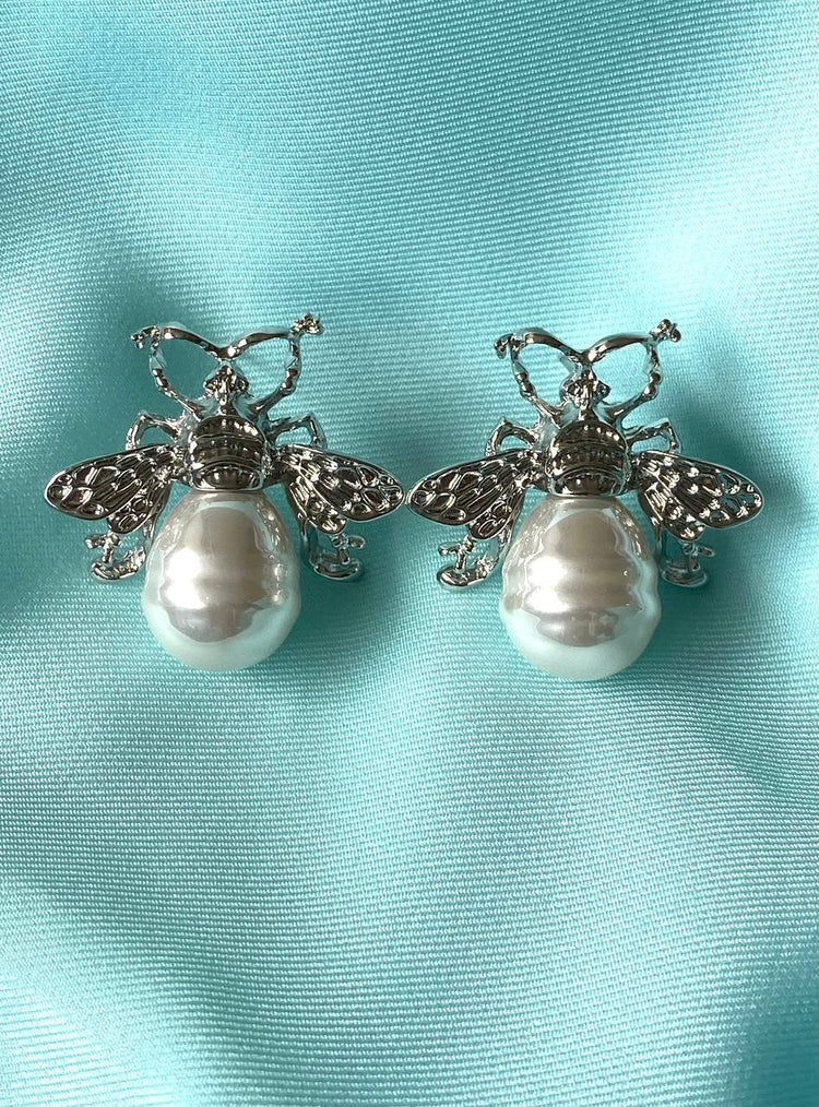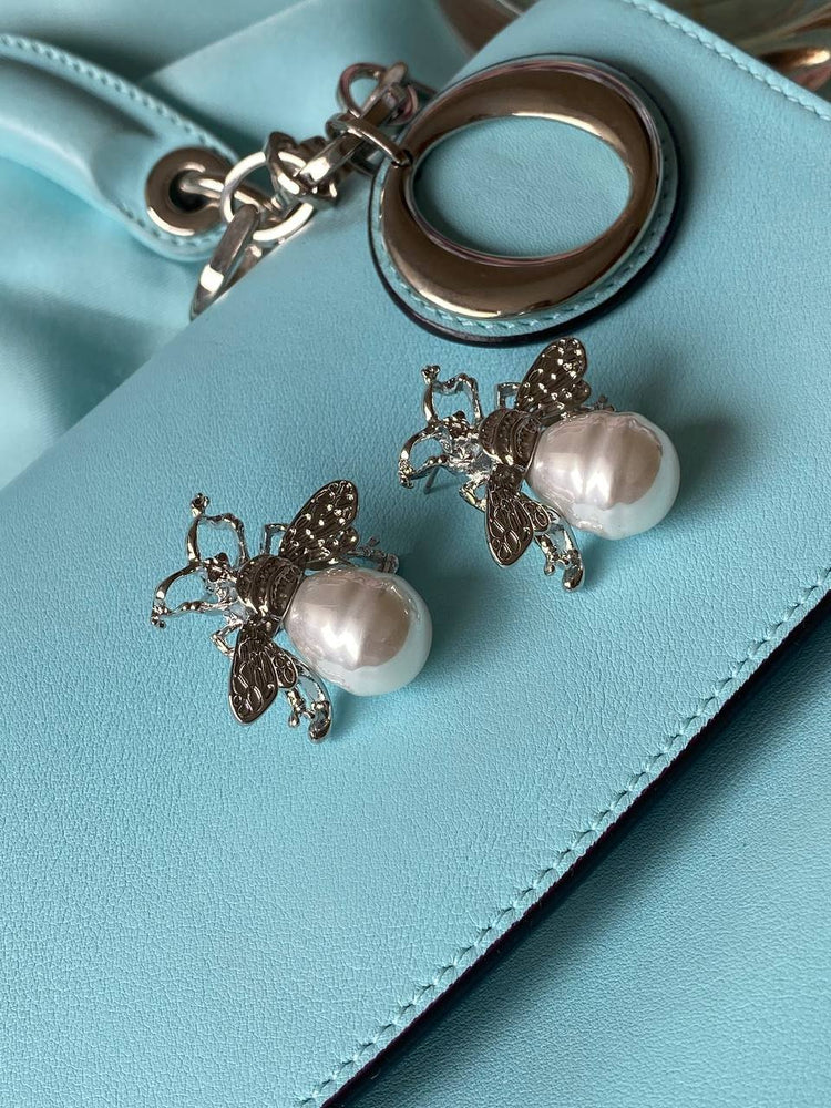 These earrings in the shape of a bee with a pearl drop are the epitome of sophistication and style. The golden details and exquisite design give them a special charm, while the large pearl pendants add a touch of elegance. They are perfect for both evening outings and creating a unique everyday look.