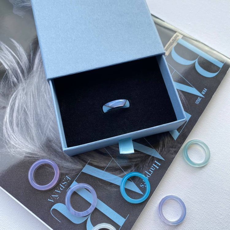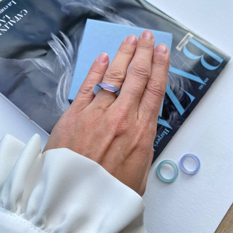 Ring is new with a tag. Delicate blue chalcedony is a stone of harmony and inner peace. It brings clarity to thoughts and fills the soul with lightness, like a light breeze on the shore of the azure sea.