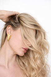 Sculptural wing-shaped earrings in a warm golden tone. A statement accent that beautifully enhances the line of the face.