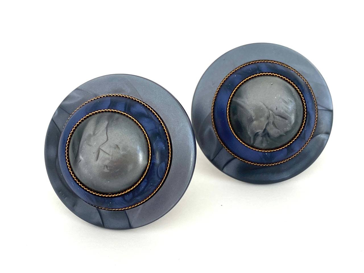 Estos exquisitos pendientes vintage, "Twilight Whirl", combinan estilo y elegancia de una forma única. Hechos de plástico, cautivan con sus profundos tonos gris azulados que brillan y crean un aura misteriosa. La parte central de los pendientes está adornada con un delicado diseño texturizado que añade un toque de intriga y llama la atención. Estos pendientes son perfectos para quienes aprecian el encanto retro y buscan destacar.