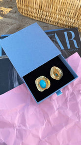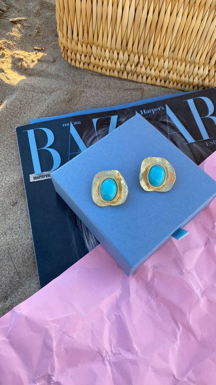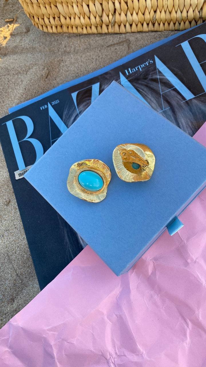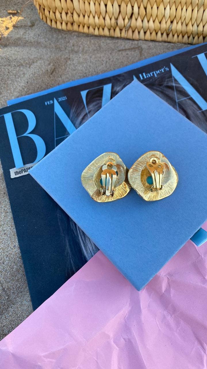 With these vintage clip-on earrings from the 80s and 90s, you’ll feel the freshness of the sea breeze and the ease of a summer holiday. The azure stone, like a fragment of ocean water, sinks into a lace setting, reminiscent of the foam of waves and golden splashes. They carry the spirit of celebration, joy, and endless summer, ready to become part of your stylish vacation.