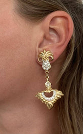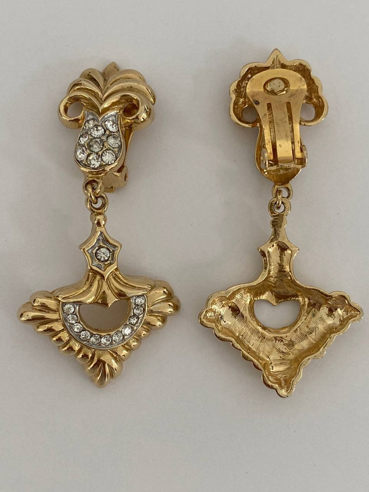 Earrings Vintage very bright with a beautiful unusual design. Consists of two movable parts Decorated with 21 crystal rhinestones that shimmer brightly in the light. Very comfortable clasp earrings are not heavy The product is in perfect condition that is a rarity for Vintage jewelry. Photos are made under different lighting especially for your convenience.