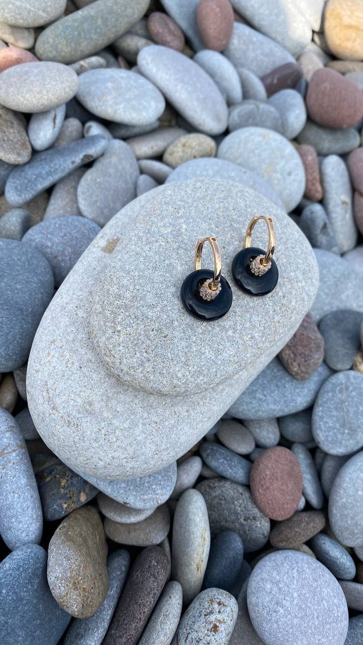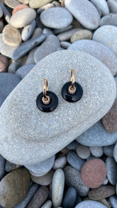 These refined earrings with glossy black onyx embody elegance and versatility. Their transformable design allows for multiple styling options—wear them with the removable charms for a bold statement or as classic minimalist hoops. A perfect choice for those who value both style and functionality.