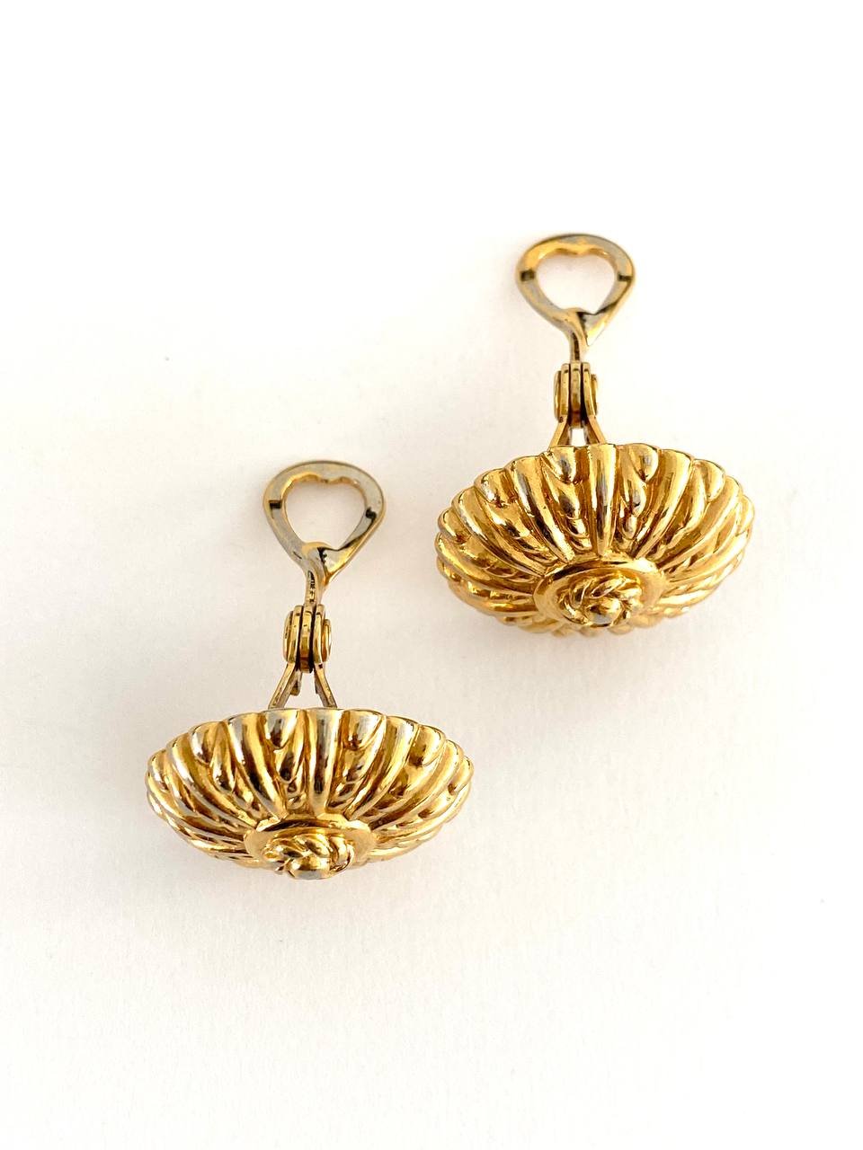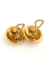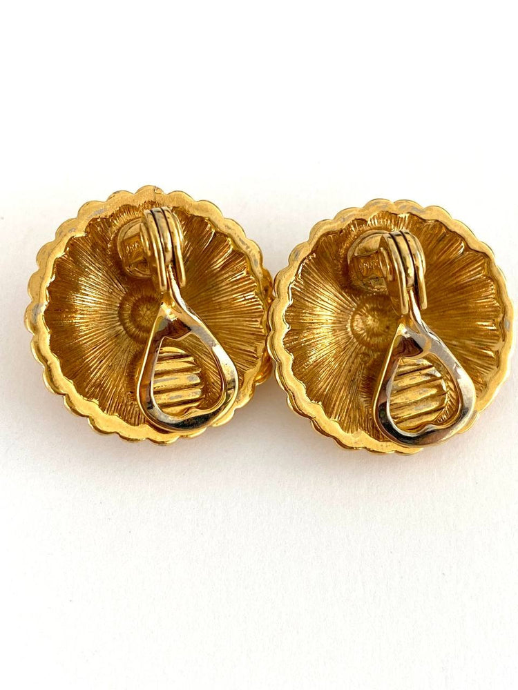 These stylish vintage clip-on earrings feature a golden rosette design with intricate detailing. Their classic design and exquisite finish make them perfect for adding an elegant touch to any outfit. An excellent choice for vintage jewelry enthusiasts.