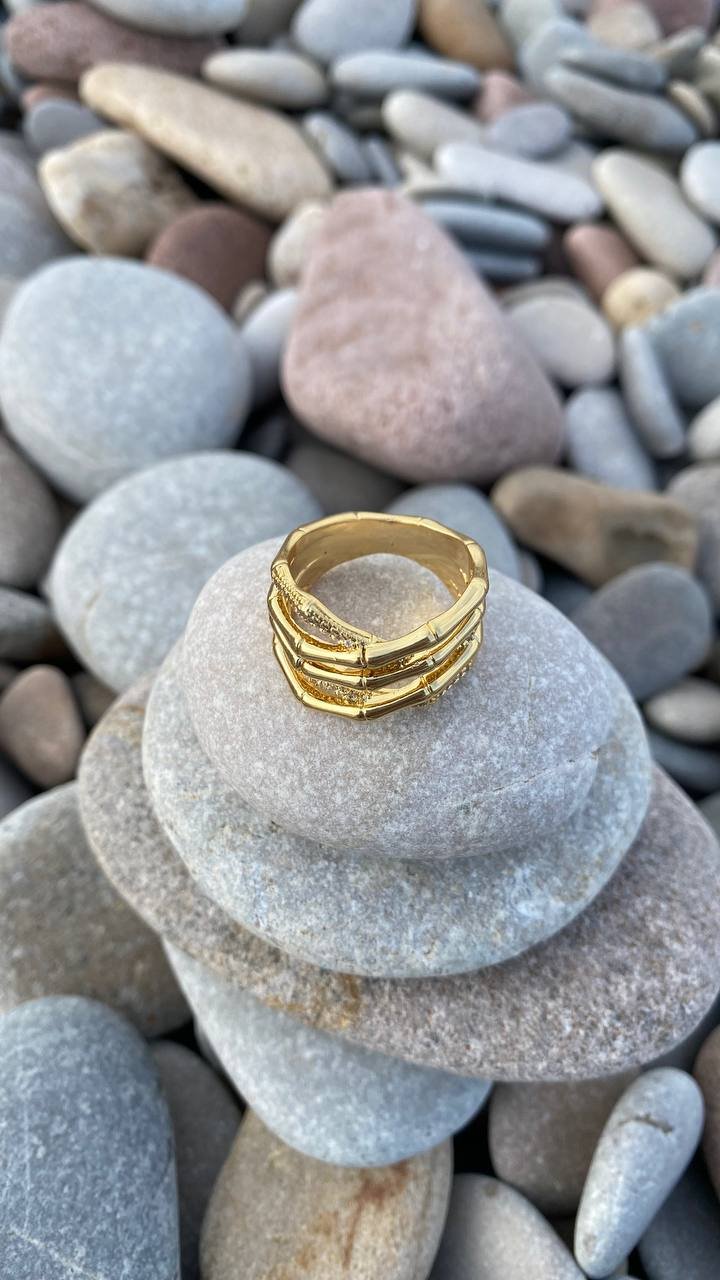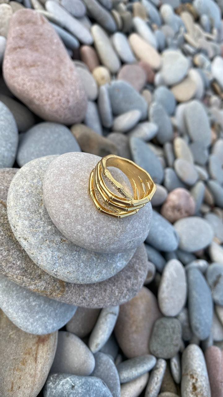 A ring inspired by the grace of nature: intertwined bamboo branches adorned with sparkling crystals, resembling drops of morning dew. The intricate weaving creates an effect of lightness and natural harmony, while the shimmering stones add a touch of refined brilliance. A perfect accent for those who appreciate the elegance of nature’s beauty.