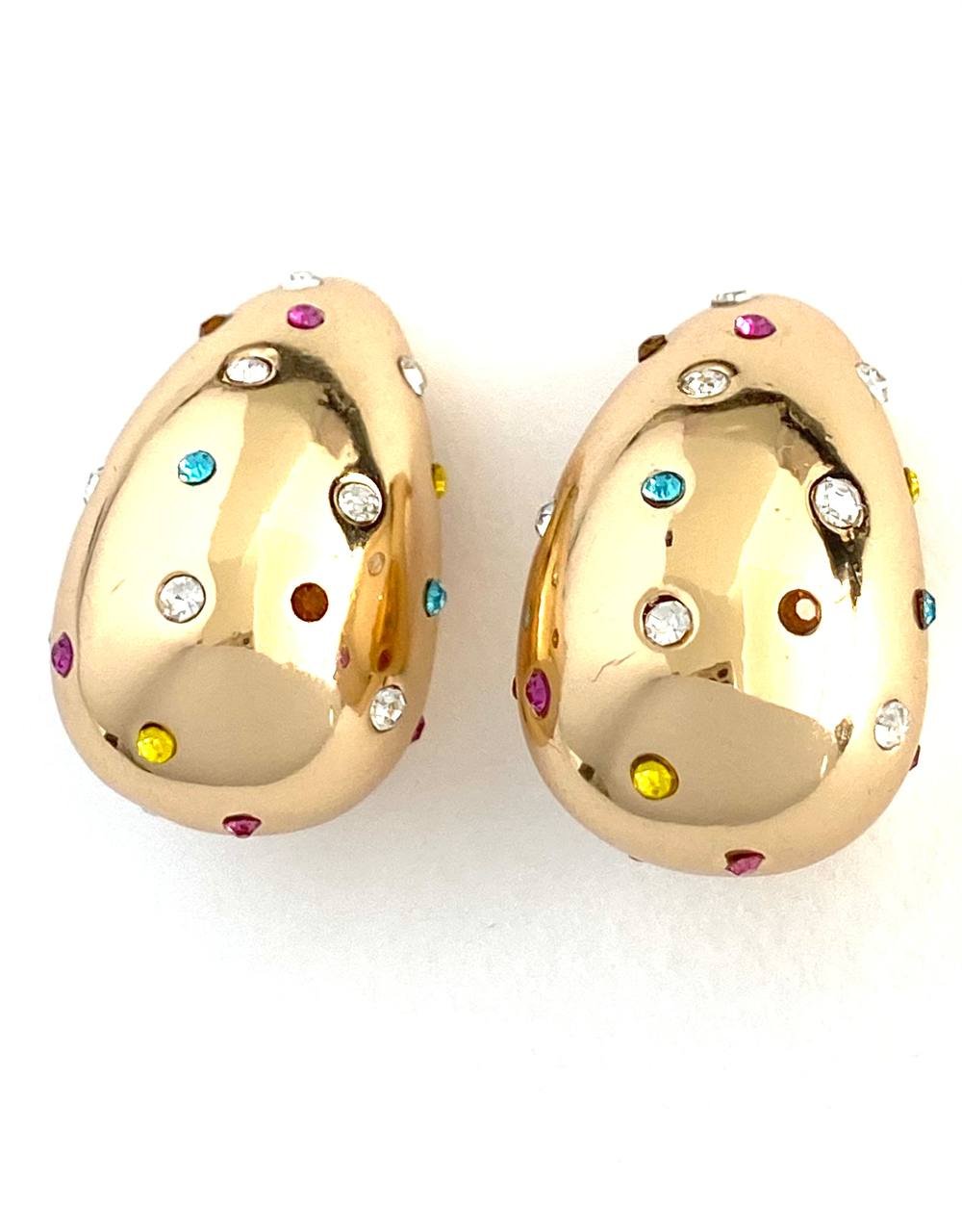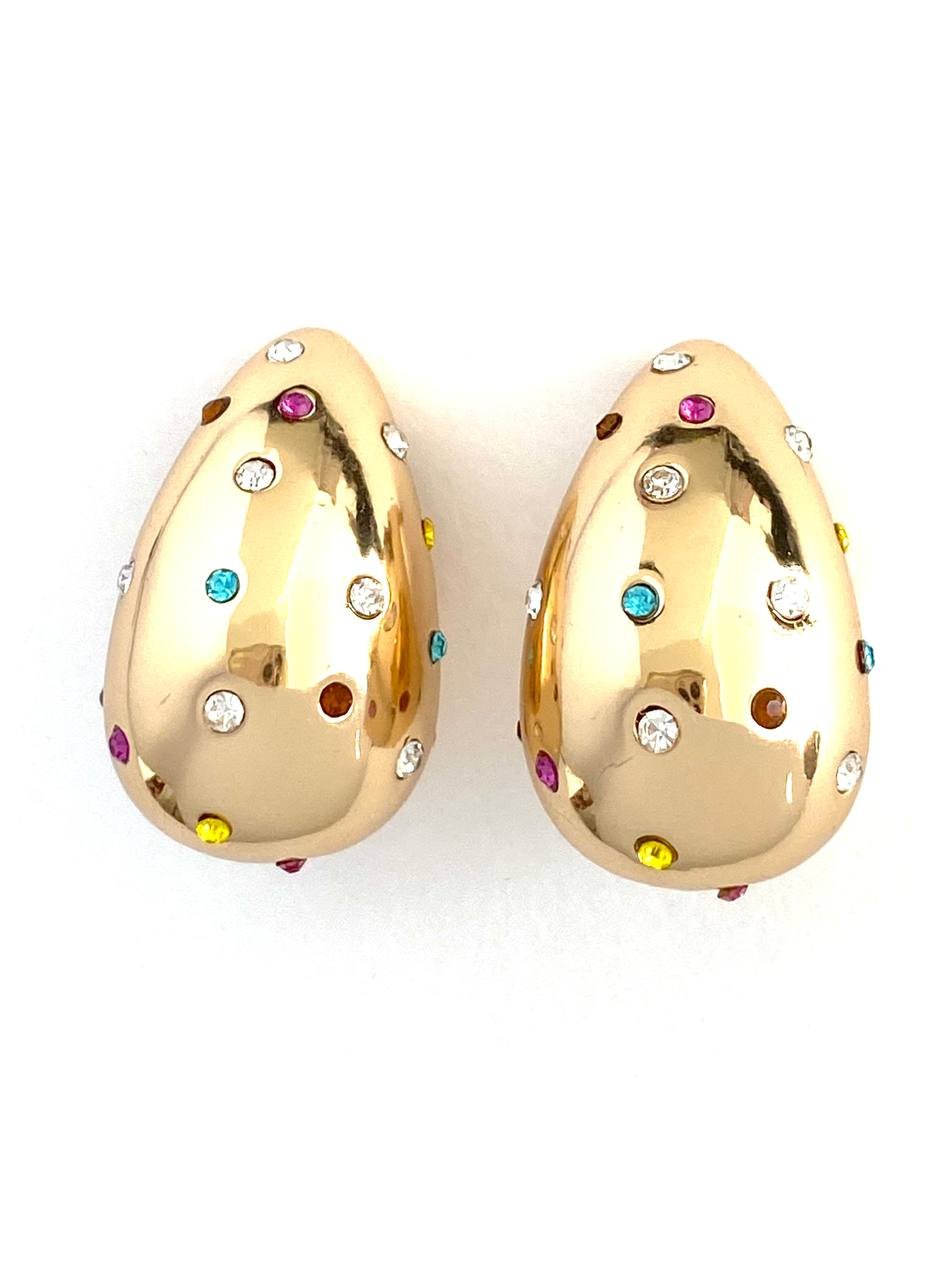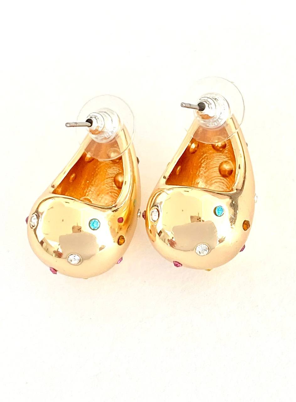 These luxurious teardrop-shaped earrings are adorned with sparkling multicolored crystals, giving them a magical charm. The gold-plated finish adds shine and elegance, making the earrings a perfect accent for any outfit. The "Magic Drops" earrings are not just jewelry but a true masterpiece that will highlight your sophistication and style.