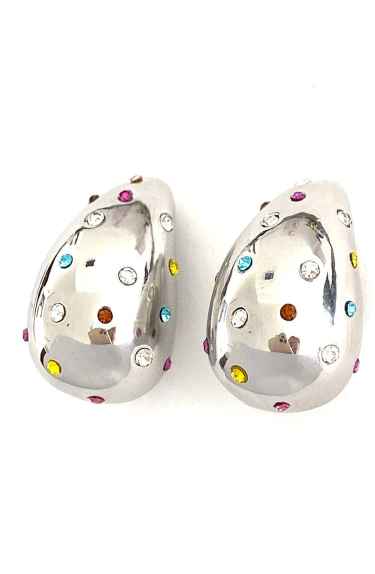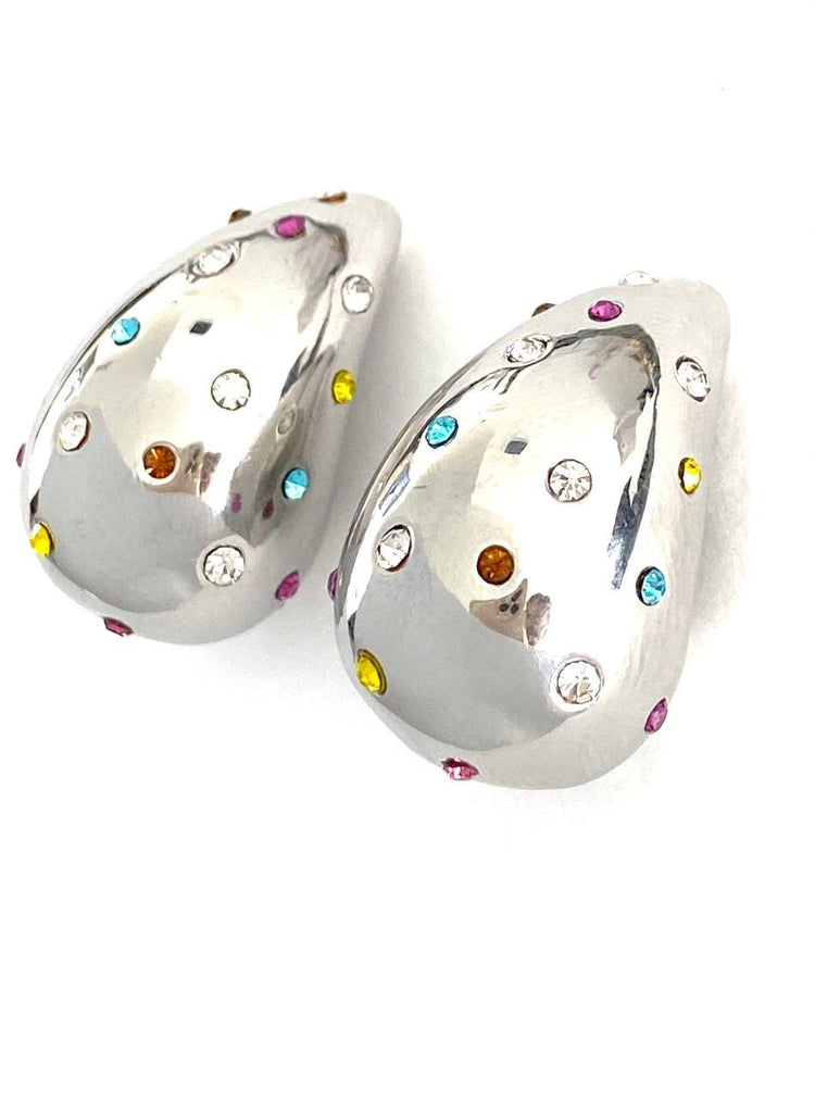 These luxurious teardrop-shaped earrings are adorned with sparkling multicolored crystals, giving them a magical charm. The silver-plated finish adds shine and elegance, making the earrings a perfect accent for any outfit. The "Magic Drops" earrings are not just jewelry but a true masterpiece that will highlight your sophistication and style.