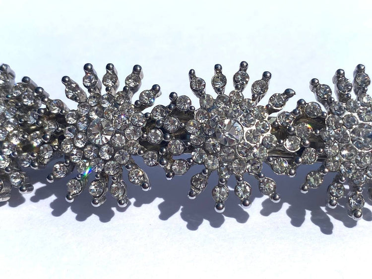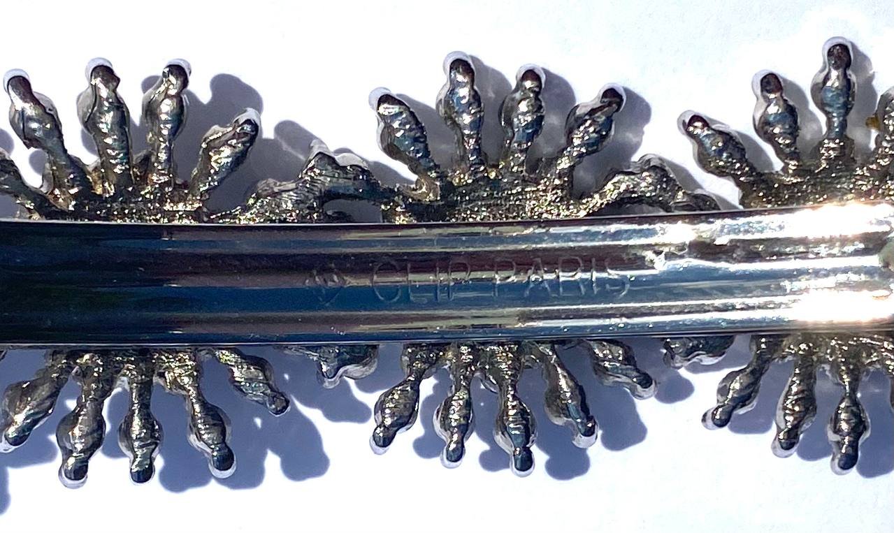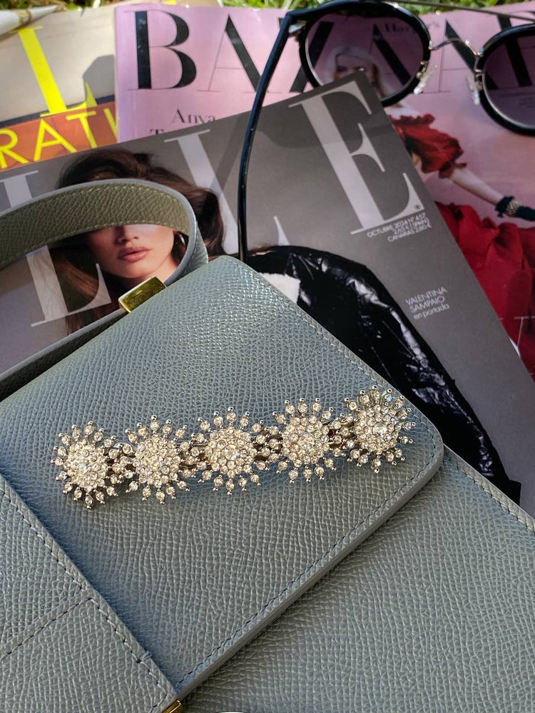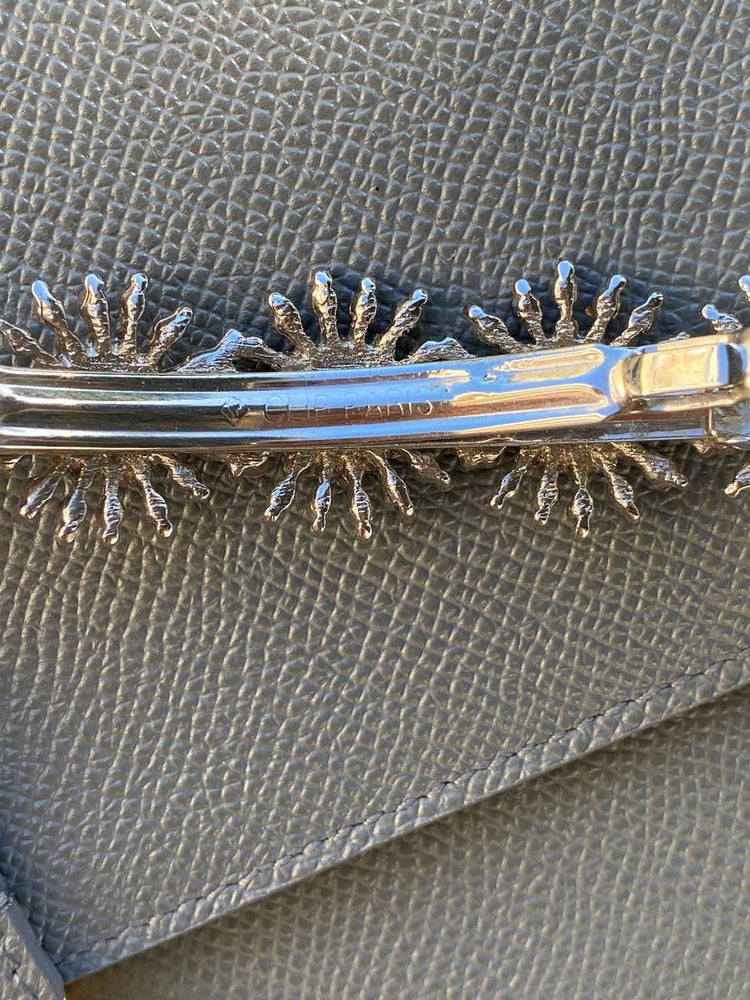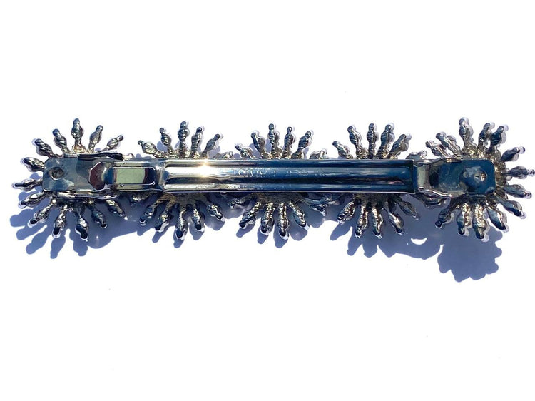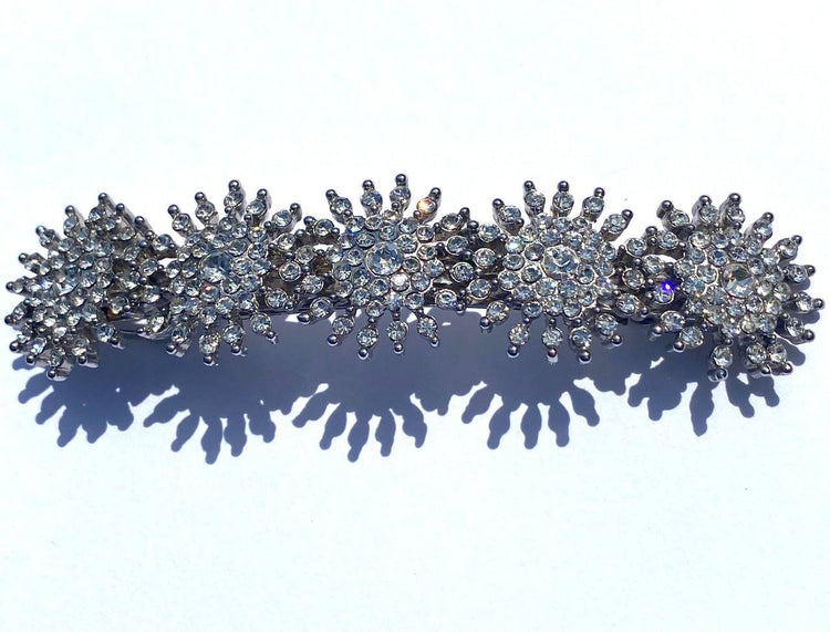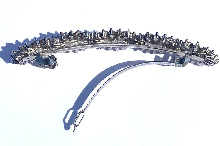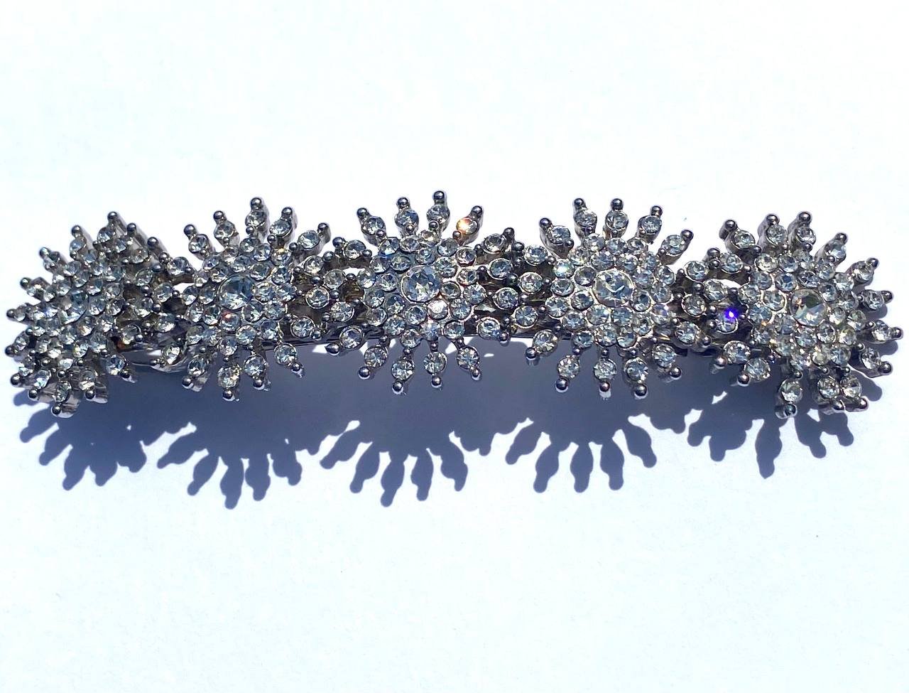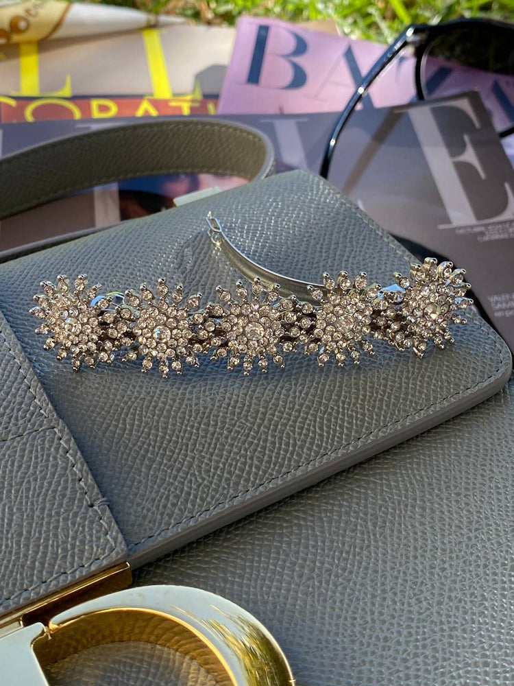 This vintage hair clip, produced in France in the 80's, reflects the radiance of the eternal sun adorned with crystal rhinestones. Inspired by French ladies, who have always been considered style icons, the hairpin fits perfectly into modern hair adornment trends, adding elegance and charm. Rare and high quality, it will adorn any look - from a simple ponytail to a sophisticated evening style. The barrette labeled “MADE IN PARIS” will become an irreplaceable detail of your style.